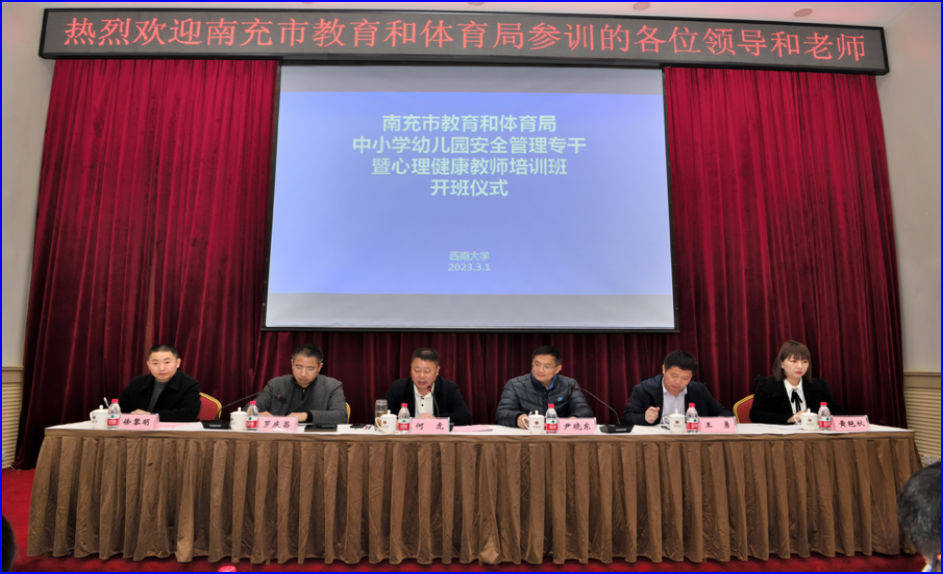 2023年2月28日,来自南充市教体系统的130余名管理人员和一线教师齐聚西南大学,参加由南充市教育体育局组织,太阳成集团tyc151cc承办的中小学(园)安全管理和心理健康教育培训,接受一场培训的思想盛宴,开启了为期五天的学习之旅。本次培训,太阳成集团tyc151cc高度重视,从课程设置、专家团队、食宿安排等方面都作了精心策划和充分准备。“千红万紫安排著,只待新雷第一声”。 3月1日上午,开班典礼在西南大学桂园金桂厅举行。
