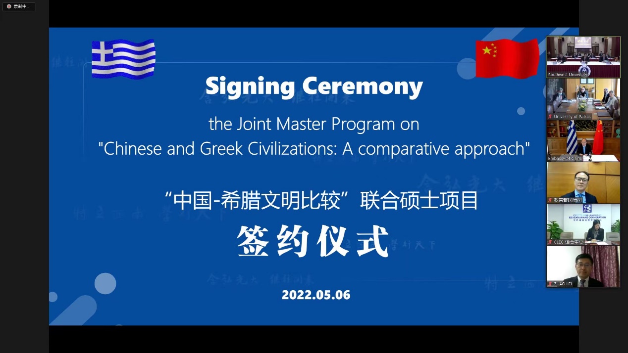 2022年5月6日,“中国-希腊文明比较”联合硕士项目签约现场