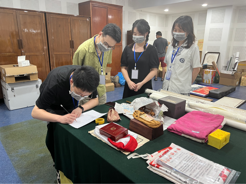 藏品部是博物馆中最重要的部门之一,其主要负责藏品的征集、整理、保存等工作,也涉及文物鉴定等其他内容。本次实习生被分到编目和征集两个小组分别进行工作。编目组在7月4、5日学习并熟悉藏品总账记录格式,以及抄录藏品档案信息;7月5、6日则对文物总登记号加印在博物馆藏品总账;7月7日在指导老师带领下进入部门库房,用电脑录入藏品档案信息,并扫描上传文物图片;7月8日学习并配合辅助藏品消杀。征集组则在7月4、5日整理捐赠的文物资料和照片,7月6日理清洗待入库藏品,7月7日协助涉案文物鉴定工作,7月8日搬运入库藏品、整理藏品库房、参与藏品征集工作、参与配合藏品消杀工作。这些工作细碎但也十分重要,正是藏品部对藏品的妥善整理与保管,才使这些藏品在日后的展出中有了用武之地。