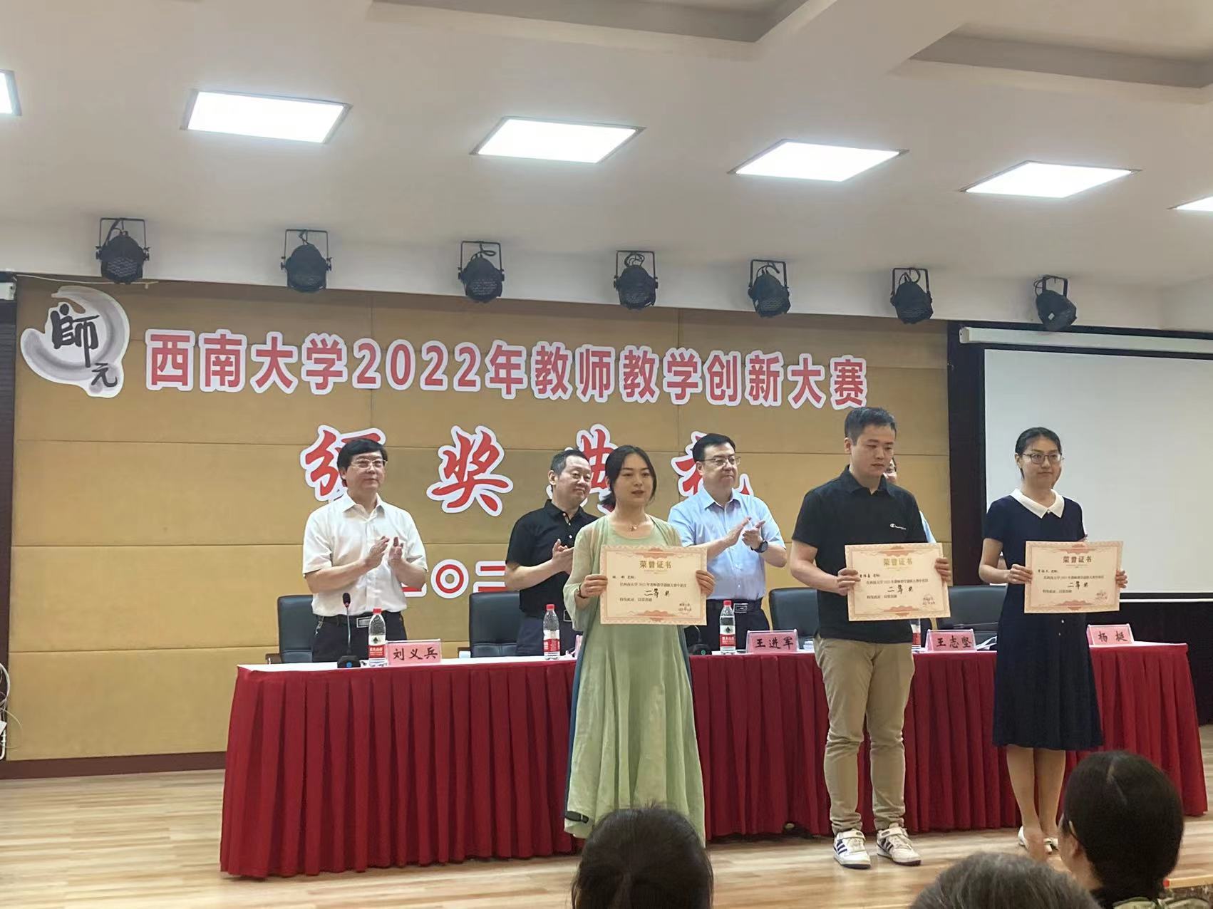 为深入学习贯彻习近平总书记关于教育的重要论述,引导广大教师增强教学改革主动性,2022年6月19日下午,以“改革教学形态·推动教学创新·培养一流人才”为主题的西南大学首届教学创新大赛圆满落幕。公司副董事长王进军、相关职能部门及各公司负责人出席比赛。公司教师曾潍嘉、陈永亮凭借出色的教学水准,作为公司代表分别荣获比赛中级组二等奖和正高组三等奖。