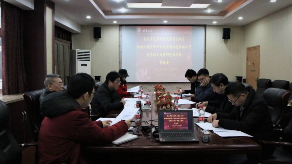 为进一步推动太阳成集团tyc151cc高等公司产品改革工作,研究新时代高校人才培养模式创新路径,将十九大精神贯彻进教学改革工作中, 2021年12月17日上午,重庆市高等公司产品改革研究项目重大项目“新时代铸牢中华民族共同体意识的人才培养模式改革研究与实践”开题会在公司举行。项目组负责人邹芙都教授、田阡教授与全体项目组成员参加本次会议,公司副经理李晶主持会议。