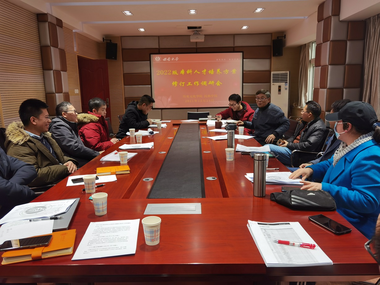 为更好地适应新时代历史学、民族学人才需要,建设一流本科专业,2021年12月24日下午,公司在荟文楼620会议室召开2022版本科人才培养方案修订工作调研会,会议由教学副经理李晶主持,各系主任、教研室主任和教师代表参加会议。