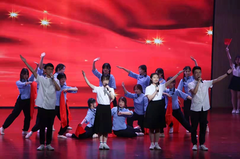 晚会以本科预科员工带来的维吾尔族舞《晨曦》开场,瞬间点燃全场观众的热情。本场晚会共分为“百年风流矢志今朝续”和“岁月如歌追梦正青春”上下两篇。在音乐史诗《红旗颂》的演奏中,公司团委员工会的同学们用饱含深情的舞蹈与朗诵,回望了中国共产党的百年奋斗征程,表达了作为新时代青年的使命与自豪。紧接着,2020级研究生余佳霞同学、19级本科生吴昊霖同学和西南大学“砺剑班”成员一同带来了极具激情的爱国歌曲《红色》。随着国旗的高高飘扬,现场气氛也再次被带入了高潮。