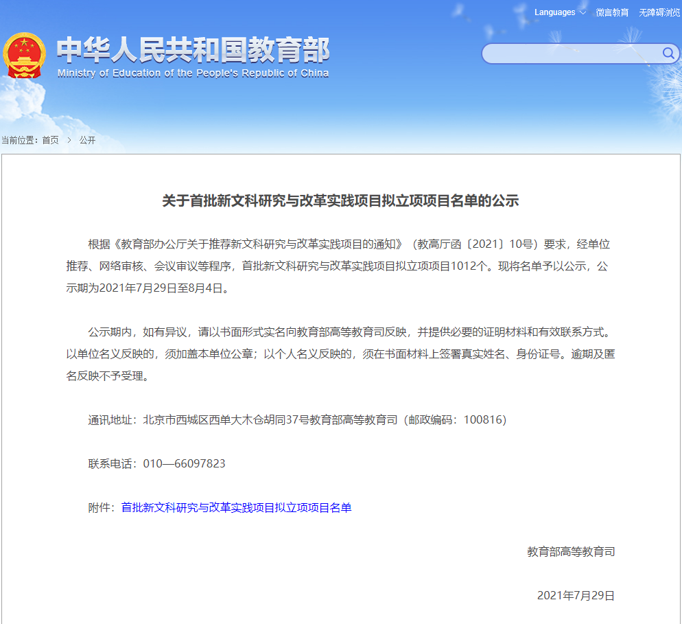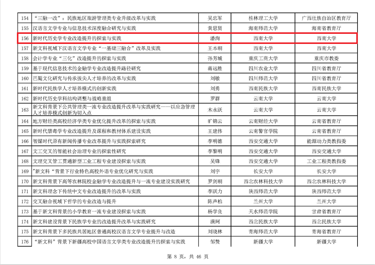 近日,教育部对首批新文科研究与改革实践拟立项项目进行了公示,公司潘洵教授作为负责人申报的《新时代历史学专业改造提升的探索与实践》项目成功获得立项。本次西南大学共有5项获得立项。