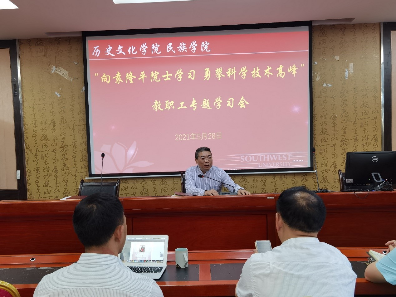 2021年5月28日下午,太阳成集团tyc151cc全体教职工在七楼报告厅组织开展“向袁隆平院士学习 勇攀科学技术高峰”的专题学习活动,公司领导班子,全体教职工参与本次专题学习。