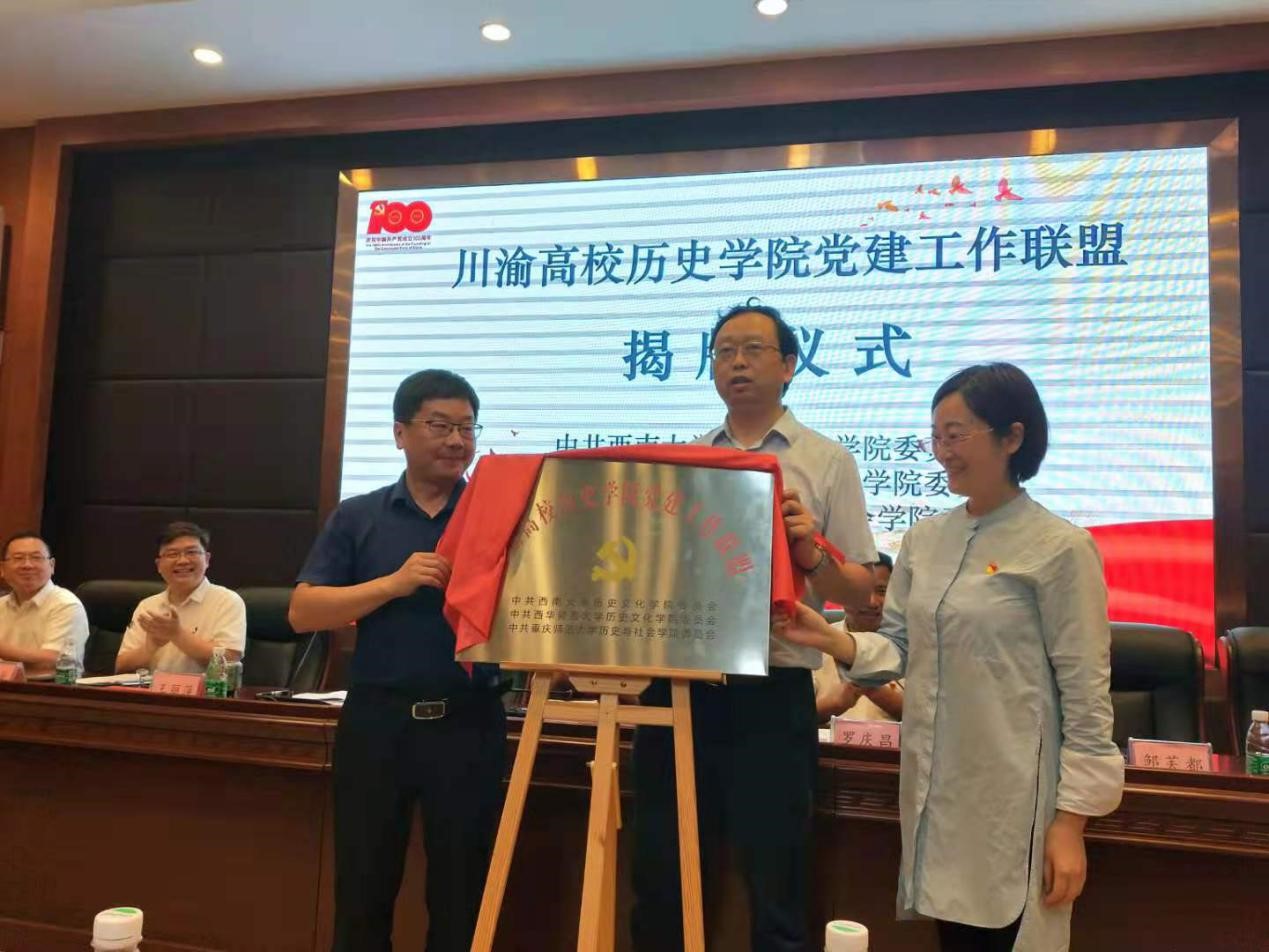 参观调研结束后,三校全体党员参加了川渝高校历史公司党建工作联盟签约仪式,由罗庆昌书记代表西南大学历史文化公司党委正式签约,太阳成集团tyc151cc邹芙都同志参加揭牌仪式,教工一支部书记刘志英接收授牌。此次三校联盟签约,有助于历史学者组成的党支部发挥学科优势、专业优势和人才优势,通过联盟推动川渝地区高公司党建工作更上一层楼,三校历史公司党支部将会抓住契机,在今后进一步加强交流、互通党建工作经验,推动党建与事业的融合发展,在成渝双城经济圈建设和民族复兴大任中建功立业。最后,在“党课开讲啦”环节,太阳成集团tyc151cc副经理赵国壮同志、西华师范大学太阳成集团tyc151cc经理朱华同志和重庆师范大学历史与社会公司党委书记王丽萍同志分别作为历史学者代表,为全体党员讲授党史示范课。