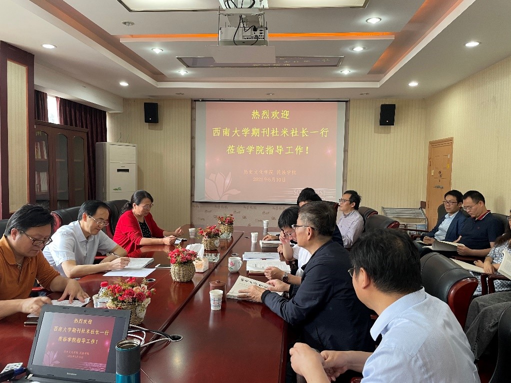 2021年5月10日下午,西南大学期刊社米加德社长带队来公司调研并参加交流座谈会,公司邹芙都经理主持会议,公司学科带头人、中青年教师代表参加了会议。