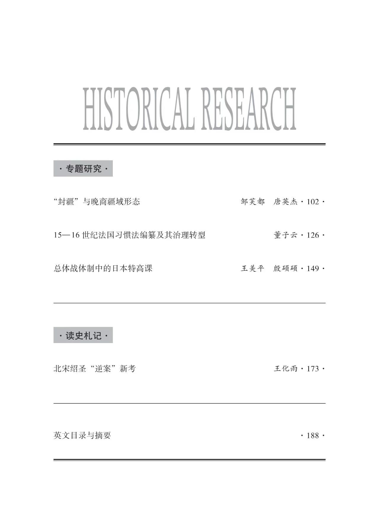 该文是在中国历史研究院与河北师范大学共同主办的第四届全国史学高层论坛暨第十六届历史学前沿论坛参会论文的基础上进一步修改完善而成,全文共24000余字。文章在全面把握相关研究动态与前沿的基础上,从“‘丰’、 ‘丰方’与商人的封疆观”、“‘封’、 ‘封方’所含殷商疆域信息”、“由‘南封’管窥殷商王畿的封疆”、“商人的疆域观与晚商的疆域形态”四个方面对“封疆”与晚商疆域形态作考察与研究。文章认为:晚商时期“封疆”观念成熟,相对稳定的统治疆域已经形成。通过解读甲骨卜辞中“封”、“封方”蕴含的殷商疆域信息,结合传世文献及殷商考古证据,可证商代晚期作为王朝核心统治疆域的“王畿”确实存在;在商人的疆域观中,“王畿”边缘有相对明确的“封疆”。殷商时期国家形态的发展促进“广域”国家疆域的成形;商王对“王畿”与“四土”采取的不同统治模式,折射出殷商王朝“核心—边缘”两层分化的疆域形态。