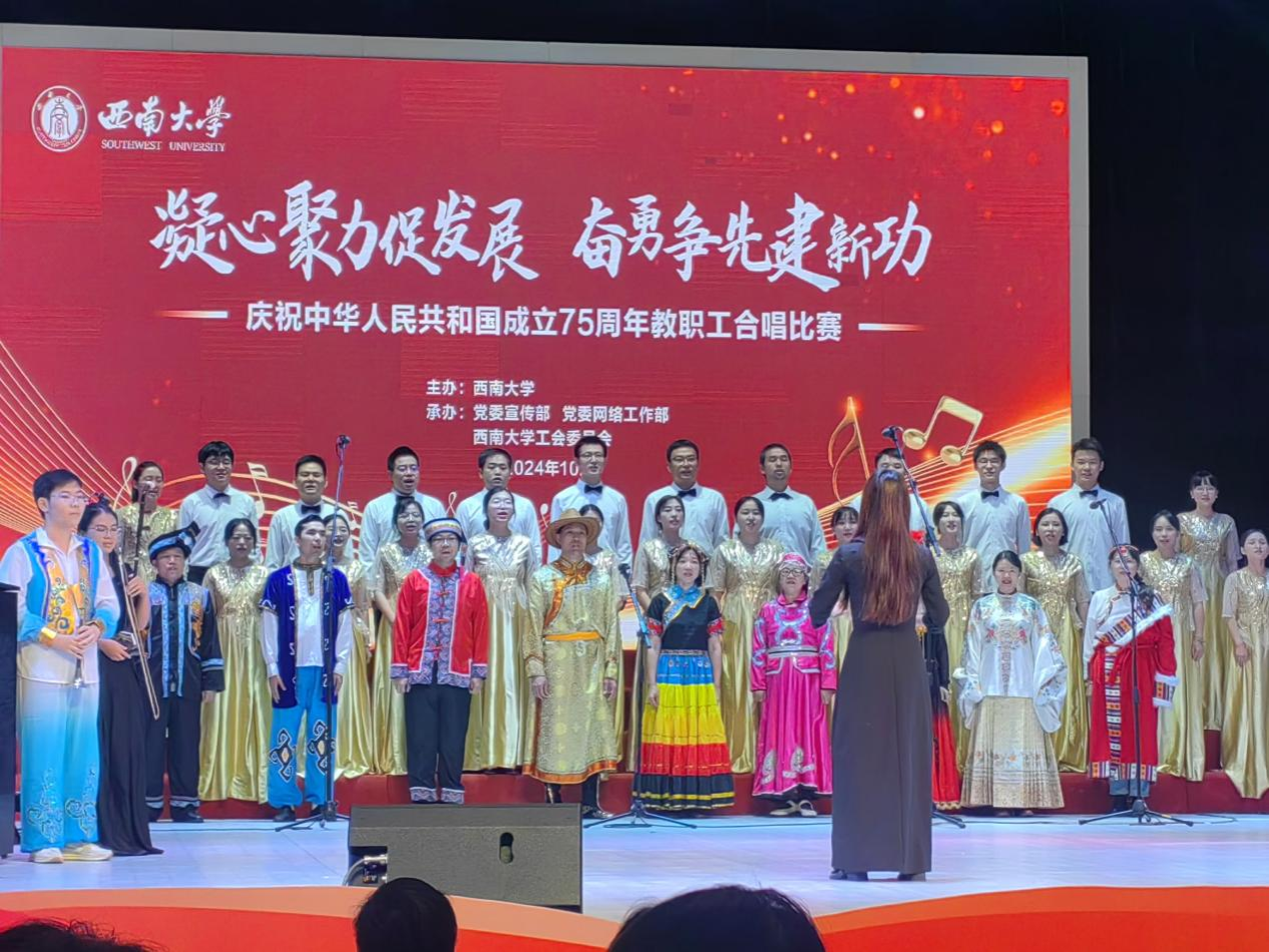 10月26日,西南大学“凝心聚力促发展 奋勇争先建新功”庆祝中华人民共和国成立75周年教职工合唱比赛在光大礼堂举行。