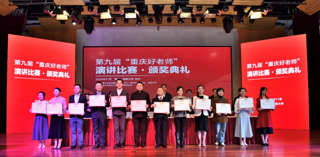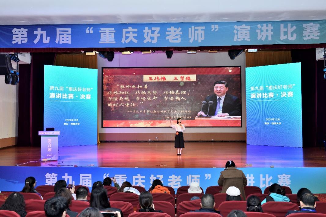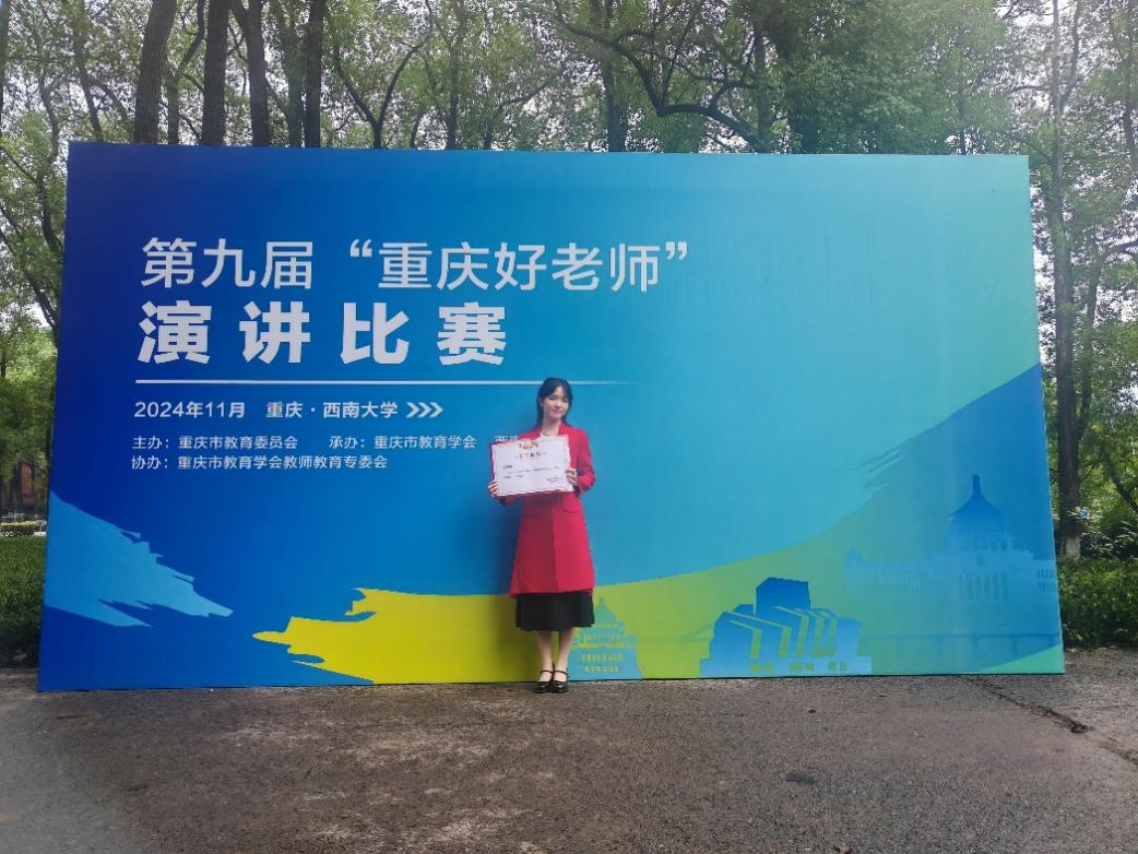 2024年11月24日,第九届“重庆好老师”演讲复赛与决赛在西南大学音乐演奏厅举行。此次大赛由重庆市教育委员会主办,重庆市教育学会、西南大学承办。经过初赛、复赛的角逐,来自重庆各高校的10名师范生与各区县的30名教师组选手晋级,进入决赛比拼。公司2022级师范生赵石荣蓉同学代表公司参赛,荣获高校师范生组一等奖。