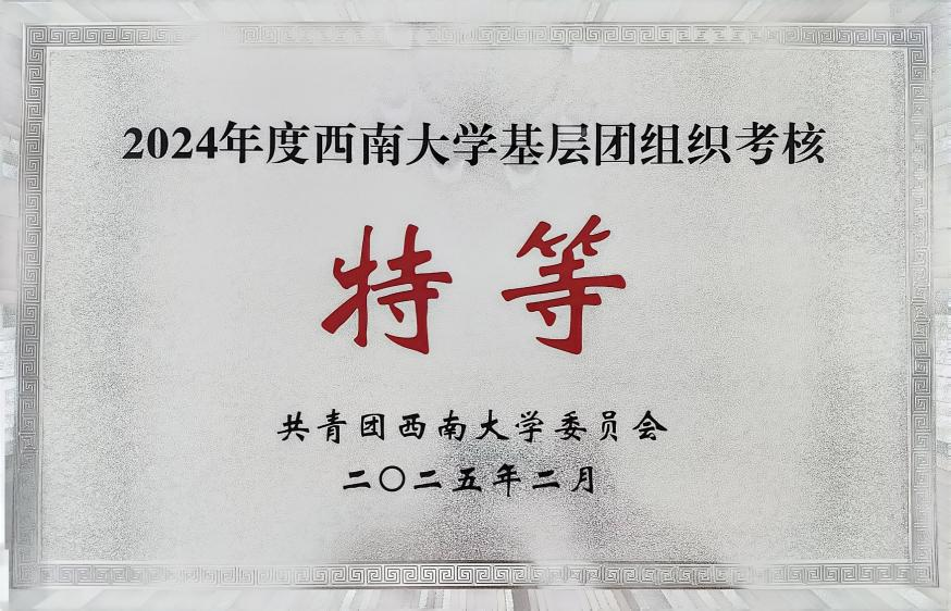 近日,校团委公布公司2024年基层团组织考核结果,公司团委等六个基层团组织荣获西南大学2024年基层团组织考核特等奖。