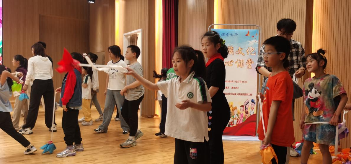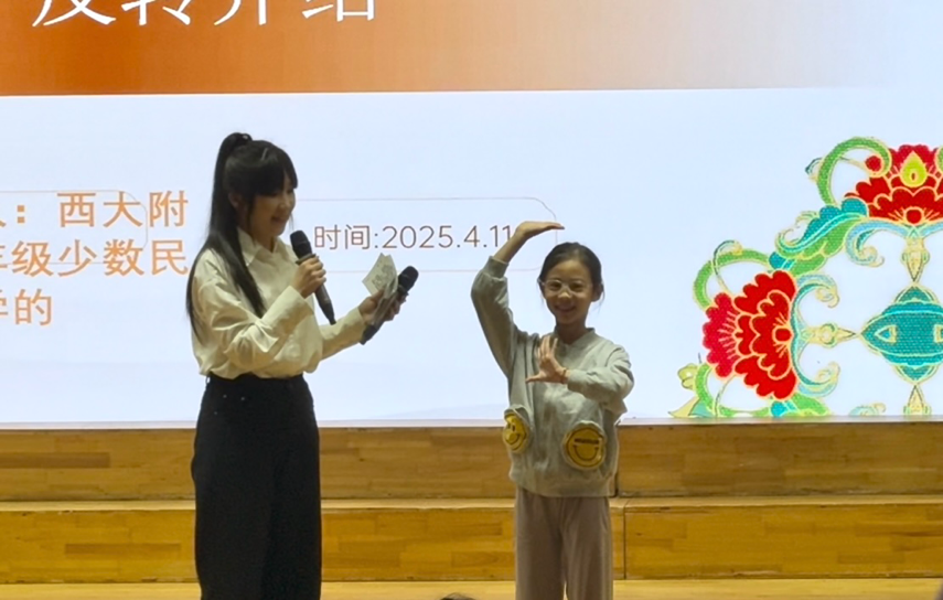 为深入推进大中小学思想政治教育一体化建设,引导小员工们感悟灿烂的中华民族文化,加强铸牢中华民族共同体意识教育。2025年4月11日,太阳成集团tyc151cc少数民族预科与西南大学附属小学共上一堂以“民族文化绽芳华 校园新苗沐朝霞”为主题的民族文化思政大课。本次活动通过“民族文化共讲”“民族故事共听”“民族游戏共乐”“民族团结手语舞共学”等丰富环节,为西大附小三年级330余名小员工带来了一堂生动精彩、别开生面的民族文化体验课,大小朋友携手共绘民族团结同心圆。