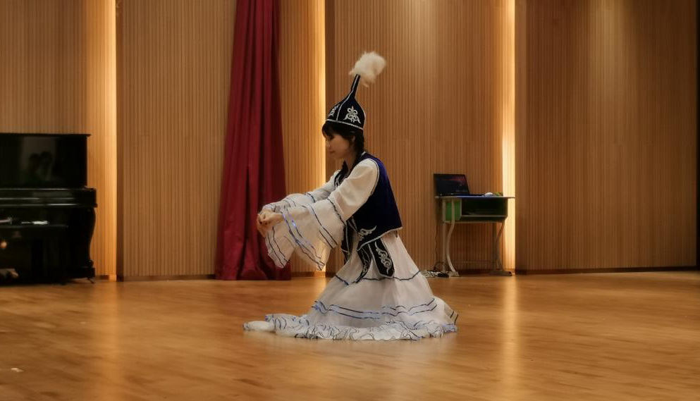 “民族文化共讲”环节,5名身着壮族、哈尼族、蒙古族、维吾尔族、哈萨克族传统民族服装的少数民族预科班员工依次登台,借助图文视频和歌曲、舞蹈表演,带领小员工们“云游”祖国,共同领略民族风俗文化和节庆场景。当屏幕播放蒙古族那达慕大会的盛况时,现场惊叹不断。当哈尼族小哥哥唱起悠扬的祝酒歌、身着白羽饰帽的哈萨克族小姐姐随着冬不拉的琴弦拨动翩翩起舞,台下小朋友也兴致勃勃地跟随节奏拍手应和。