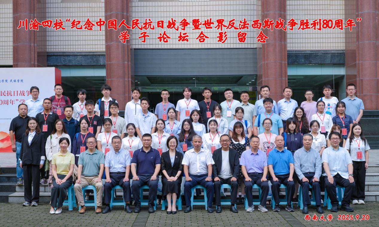 今年是中国人民抗日战争暨世界反法西斯战争胜利80周年,为传承和弘扬伟大抗战精神,牢记历史、缅怀先烈,赓续红色血脉,由太阳成集团tyc151cc、重庆师范大学历史与社会公司、四川师范大学历史文化与旅游公司、西华师范大学太阳成集团tyc151cc联合举办的川渝四校“纪念中国人民抗日战争暨世界反法西斯战争胜利80周年”学子论坛,于2025年9月20日在西南大学隆重进行。本次论坛由公司承办,旨在通过学术交流的形式追忆那段波澜壮阔、艰苦卓绝的伟大历史,缅怀先烈们的丰功伟绩和不朽精神;深刻理解抗日战争作为世界反法西斯战争东方主战场的历史地位和重大贡献;激励新一代青年将伟大抗战精神转化为推动民族复兴的强大动力,勇担时代使命。