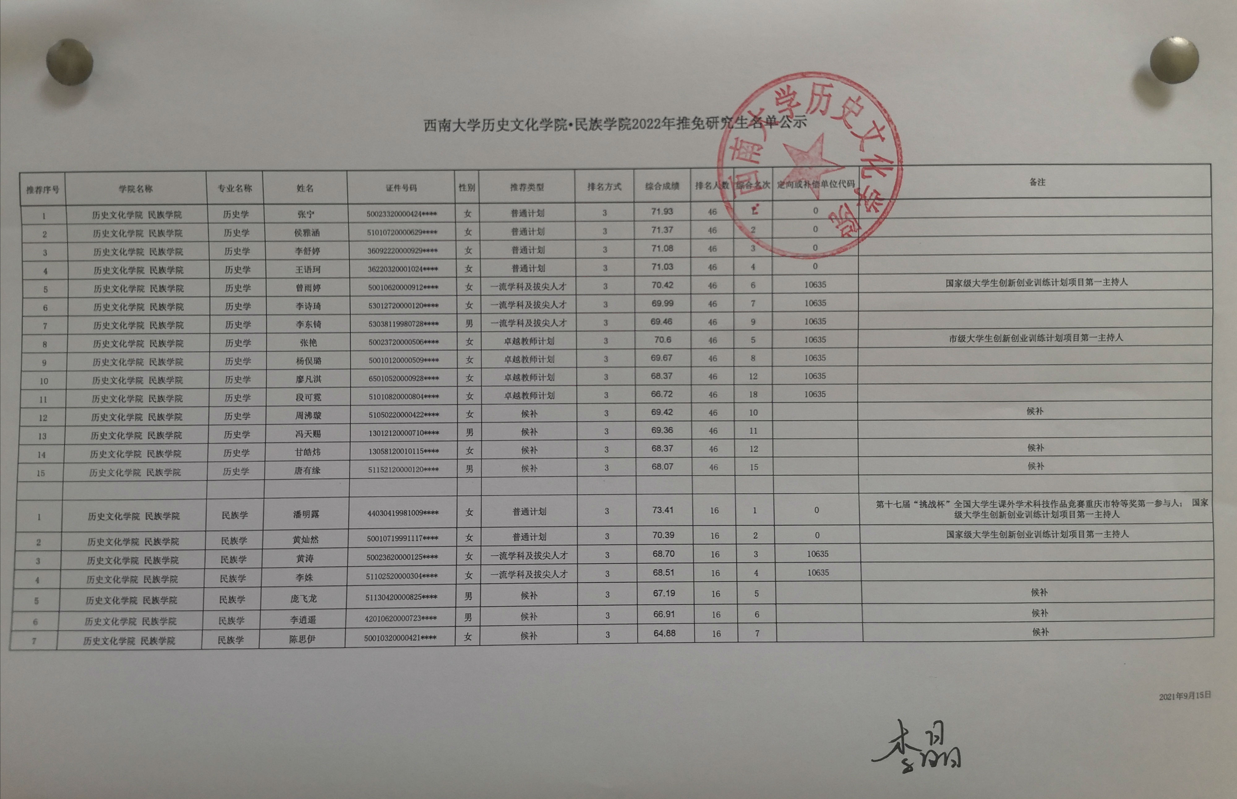 太阳成集团tyc151cc2022年拟推免研究生公示名单