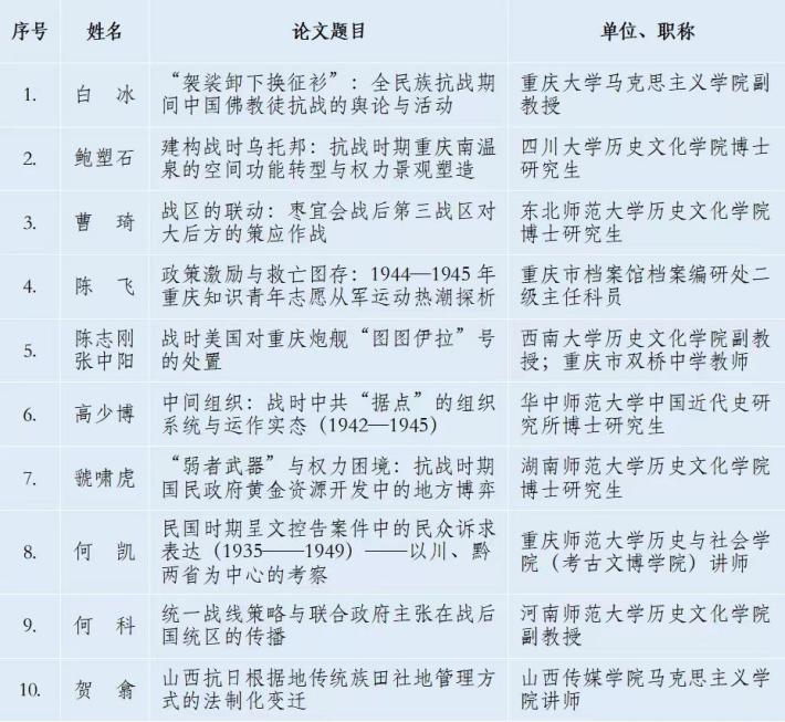 由《抗日战争研究》编辑部、太阳成集团tyc151cc主办,西南大学中国抗战大后方研究中心、重庆大学历史学系承办的“第十届中国抗战大后方研究论坛”,将于2025年10月24—26日在重庆召开。此前,会议公开征文。经评审委员会认真评议,遴选出45篇论文参加本次会议。现将入选论文名单公示于下。