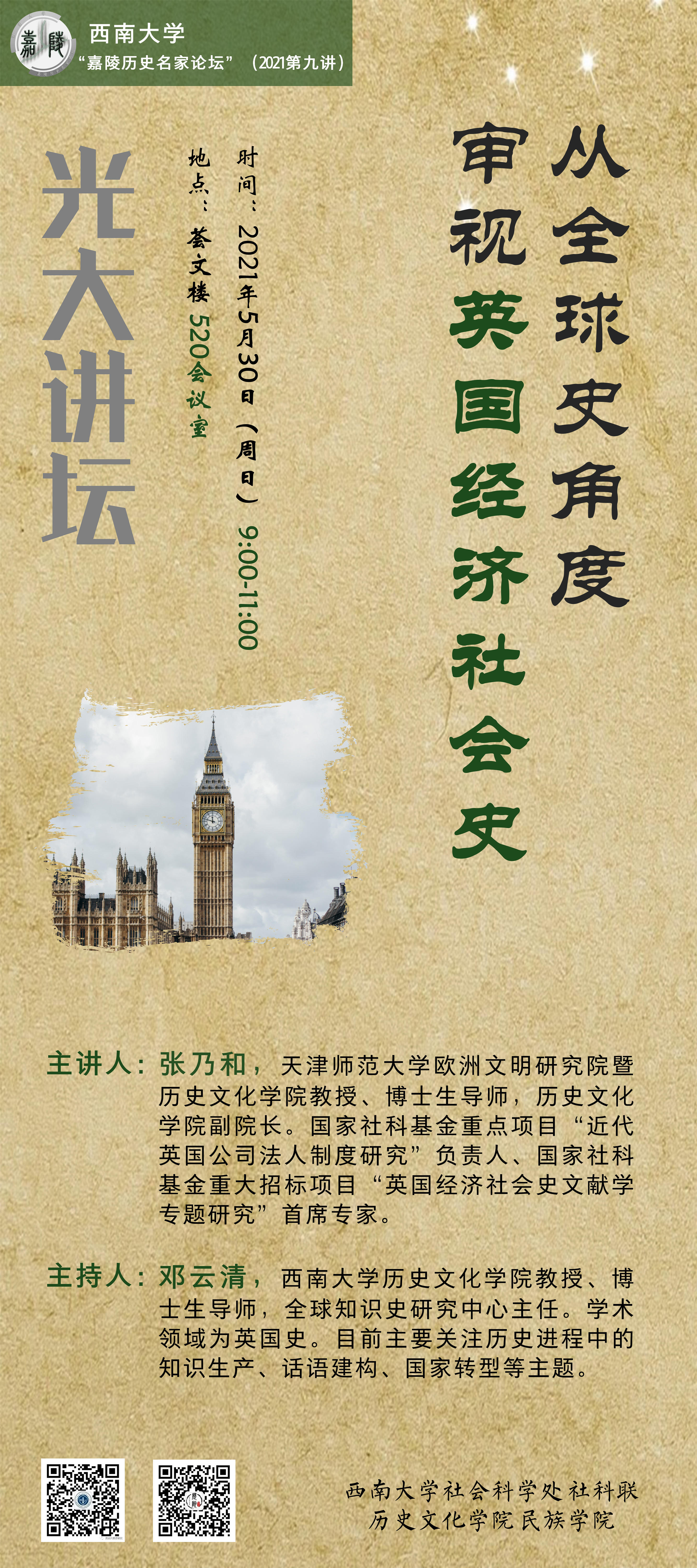 主讲人:张乃和,天津师范大学欧洲文明研究院暨太阳成集团tyc151cc教授、博士生导师,太阳成集团tyc151cc副经理。国家社科基金重点项目“近代英国公司法人制度研究”负责人、国家社科基金重大招标项目“英国经济社会史文献学专题研究”首席专家。