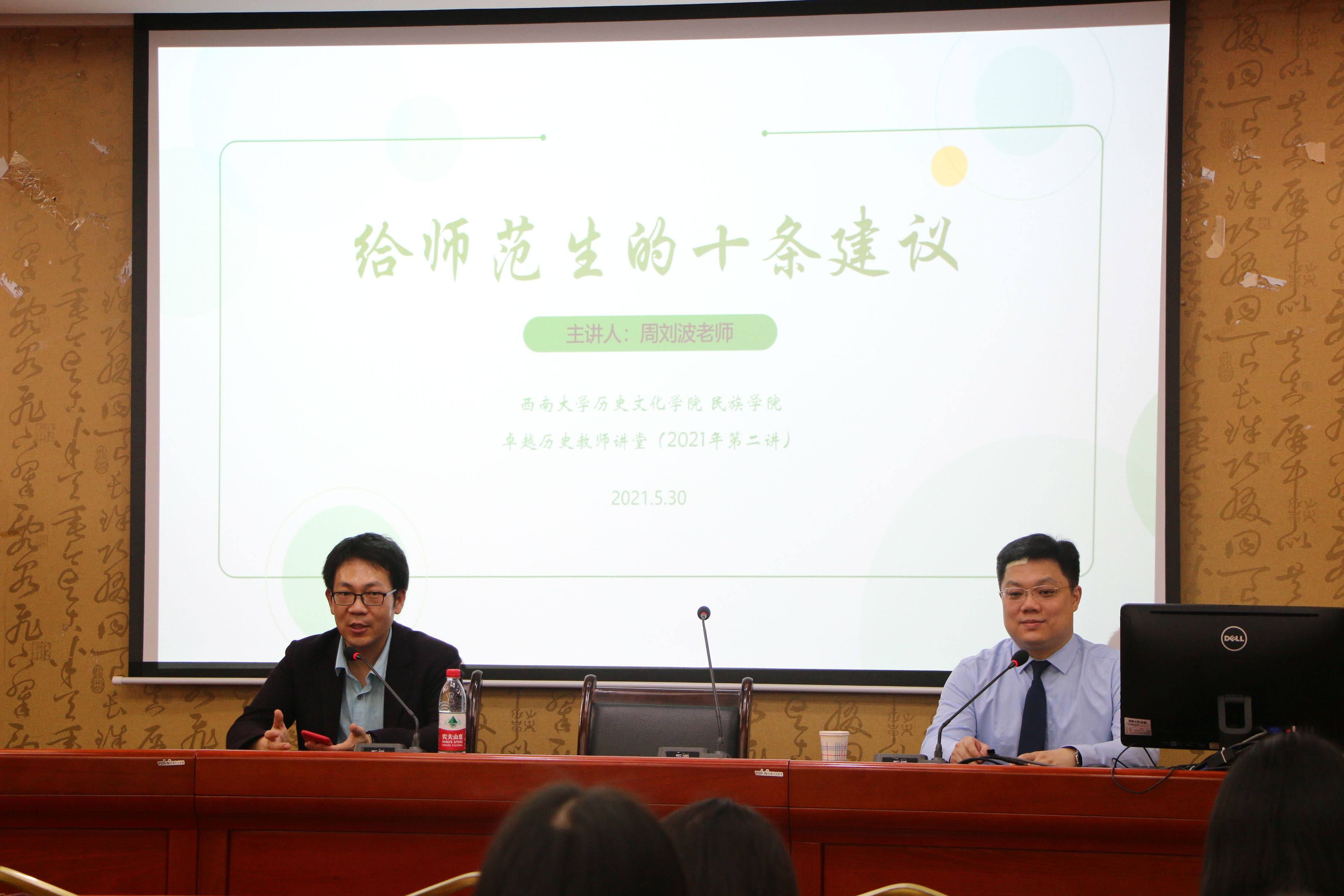 2021年5月30日下午卓越历史教师讲堂2021年第二讲在荟文楼7楼报告厅开讲。本次讲座由正高级教师、“国培计划”专家库入选专家周刘波老师主讲、太阳成集团tyc151cc副经理李晶主持,太阳成集团tyc151cc100余名师范生参加了本次讲座。
