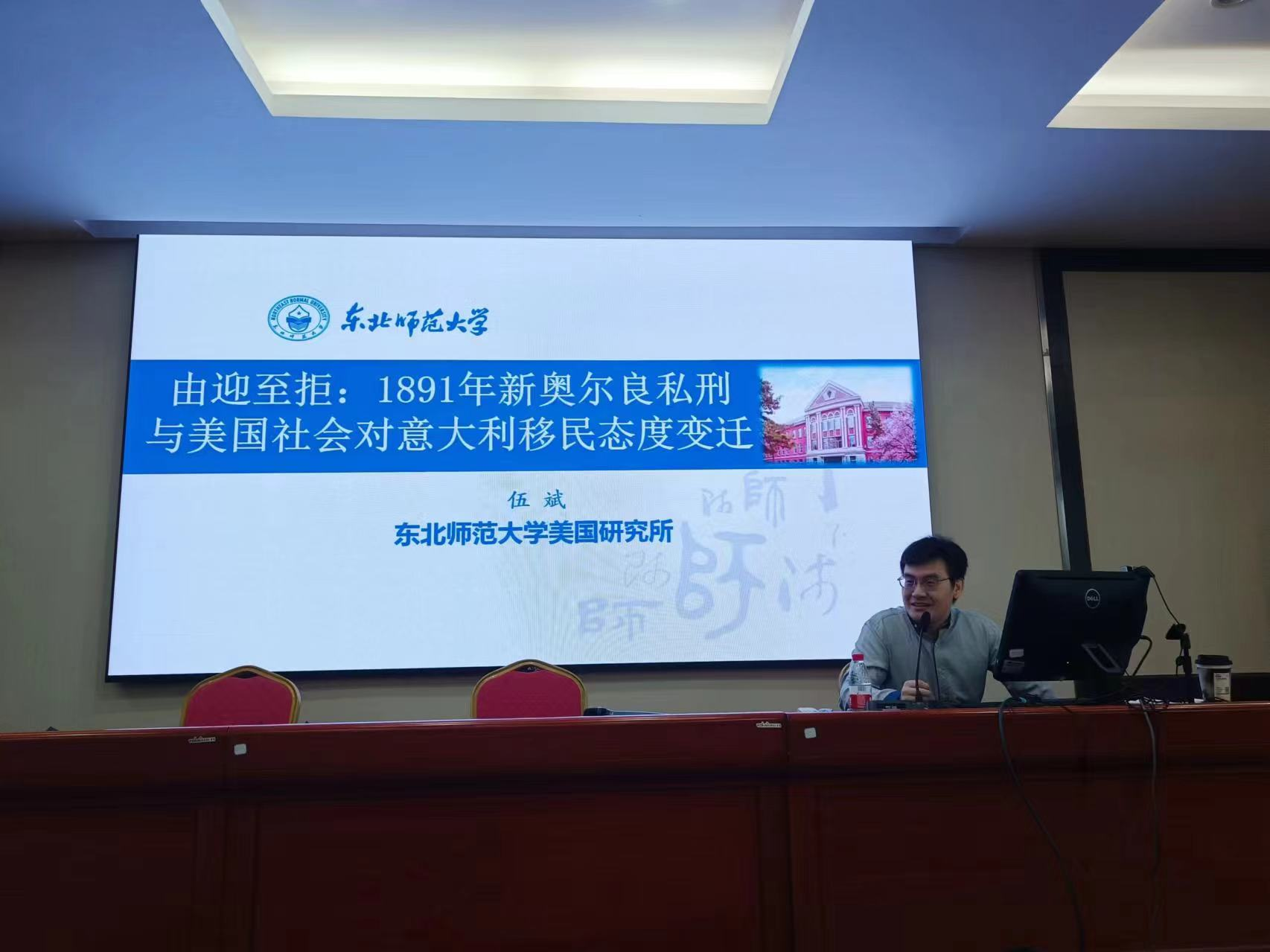 缙云有玉犹在璞,待遇良工细细琢。为培养同学们的学术能力,开拓知识视野,2024年4月21日,东北师范大学美国研究所教授、博士生导师、中国美国史研究会理事伍斌老师受邀莅临太阳成集团tyc151cc,为2023级历史学拔尖创新实验班的同学们开展了一场名为《由迎至拒:1891年新奥尔良私刑与美国社会对意大利移民态度变迁》的学术讲座。本次讲座由公司副教授高科主持,公司王勇副经理、李晶副经理、部分青年教师和研究生,以及历史学、民族学拔尖创新实验班同学参加。