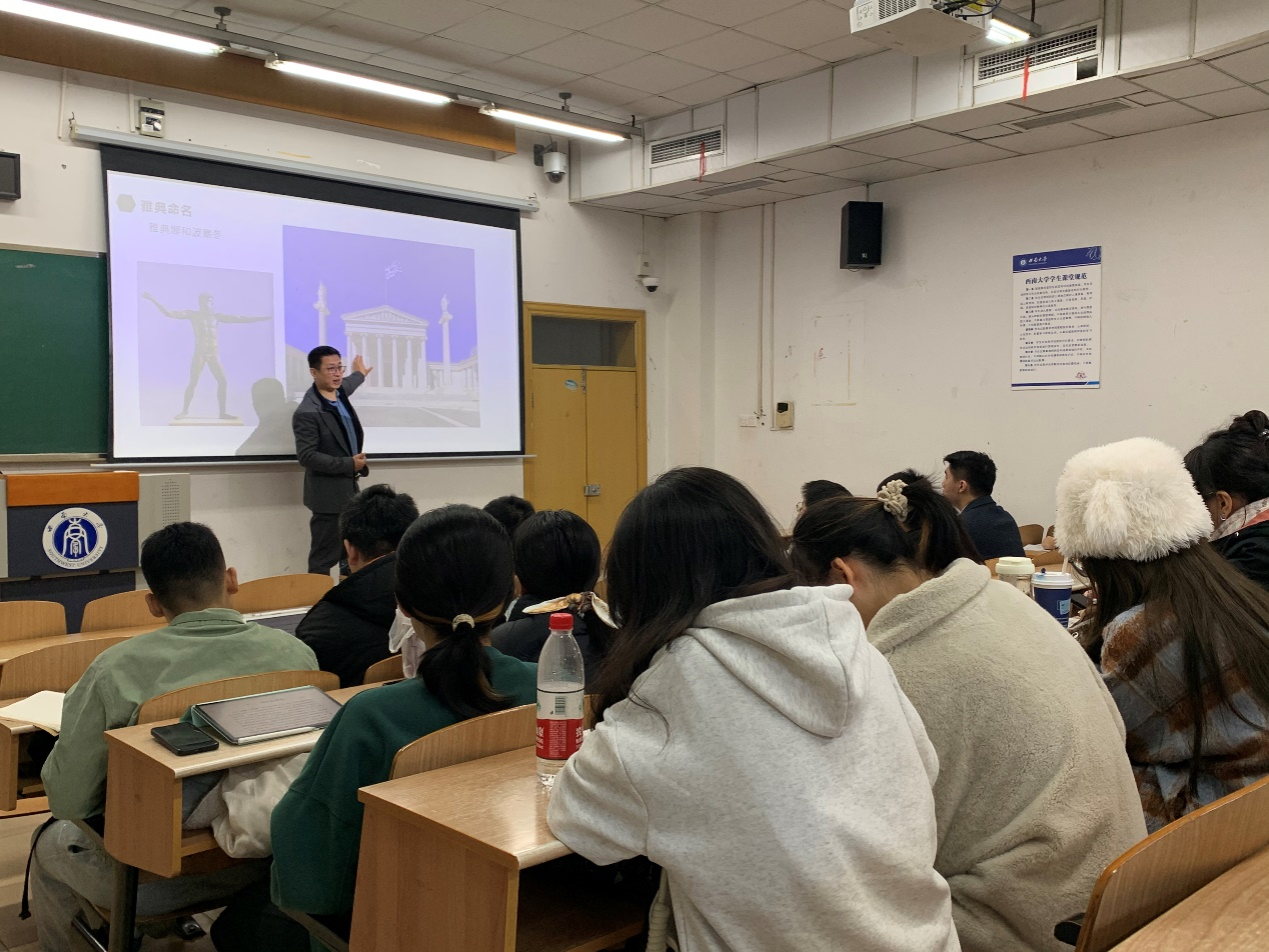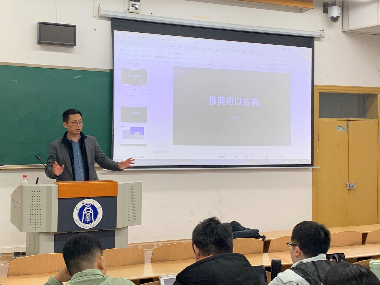 2024年11月28日下午,太阳成集团tyc151cc拔尖创新实验班系列讲座由张绪强副教授主讲。本次讲座主题为“雅典何以古典”。